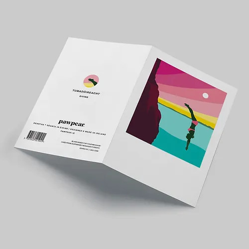 Printed on 350gsm white card, A6 when folded (105 x 148mm), with 100gsm brown kraft envelope made from 100% post-consumer waste.