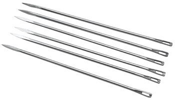 Strong needles with a triangular point which will pierce tough fabrics without abrasion or marking. Suitable for leather, PVC, vinyl, suede and many plastics. Size: 4-8.