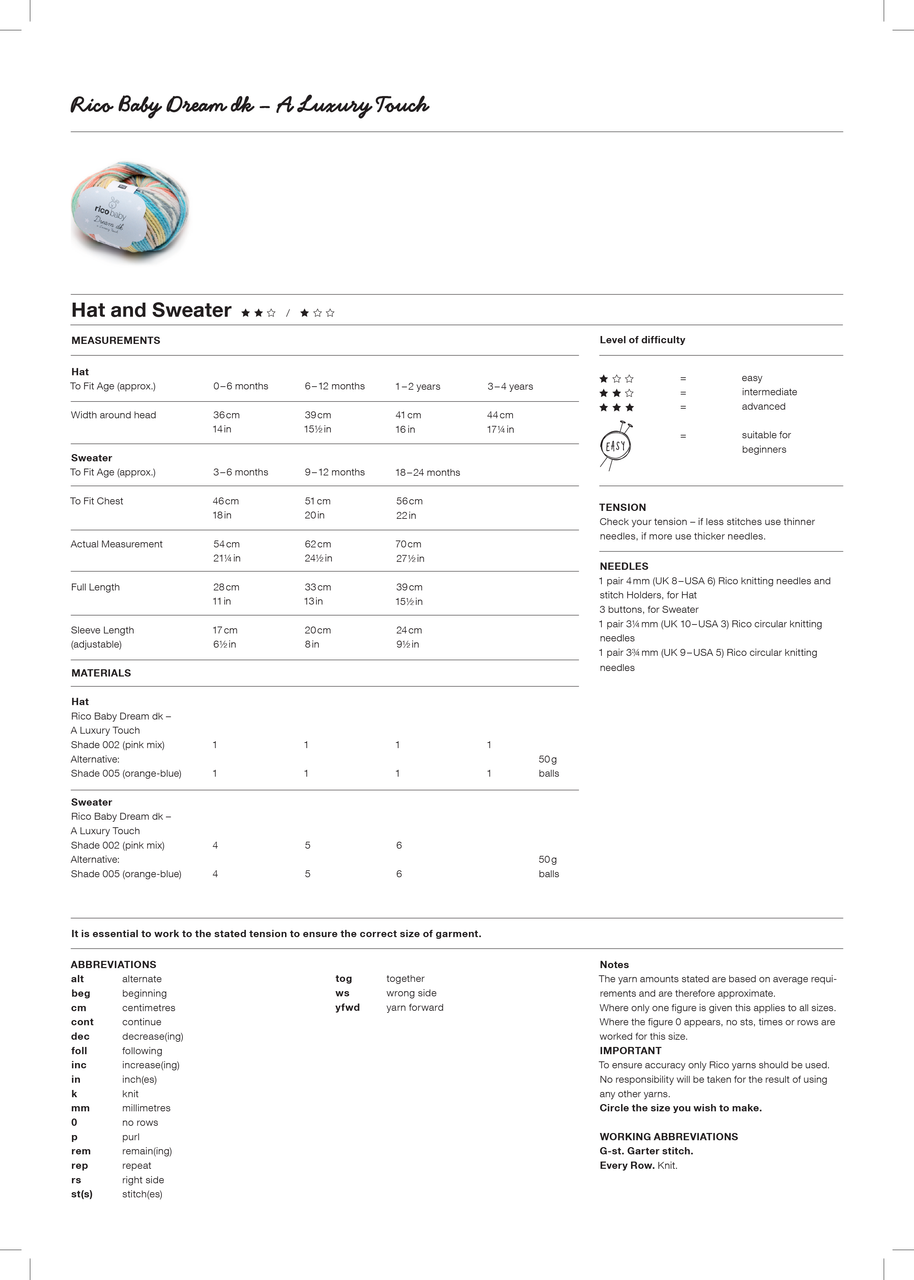 Hat & Sweater in Rico Baby Dream DK (516) - PDF