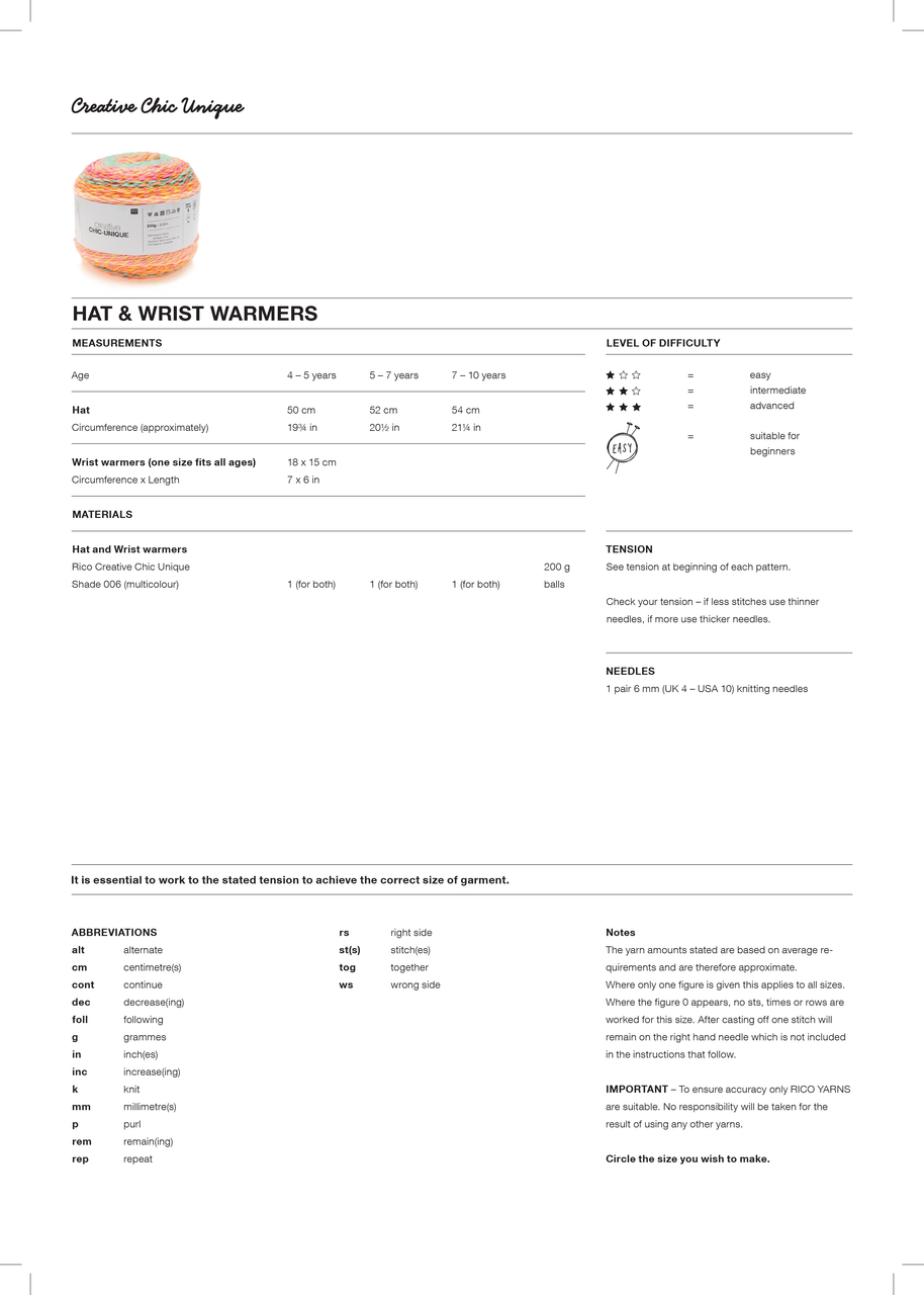 Hat & Wrist Warmers in Rico Creative Chic Unique (1026) - PDF