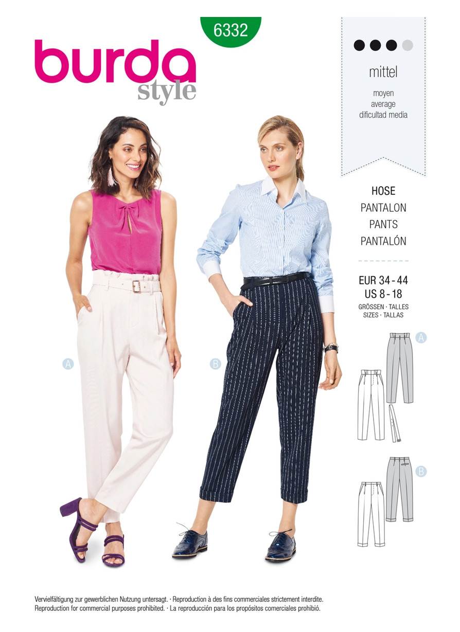 Pleated trousers/pants with hip yokes and narrow legs. The pleats and pressed creases are absolutely up-to-date and just right for the office. View A is regular length with a pleated waistband and a belt. View B is cropped at 7/8-length with cuffed legs.