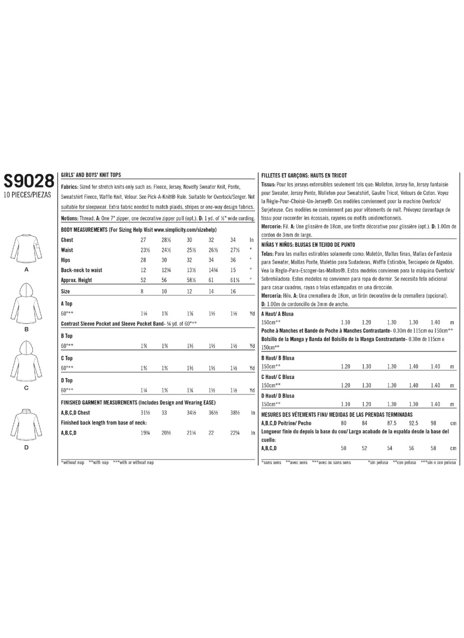 Pull-on sweater tops with round or funnel neckline or hood. Kangaroo and side pockets. Designed and sized for stretch knits. Can be constructed using …