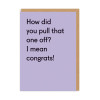Well, how did you?! Tell us! What's the secret? If you're in disbelief but need to send off a congratulations greeting card then this beauty is the one! You can remind your friend what a jammy person they are.