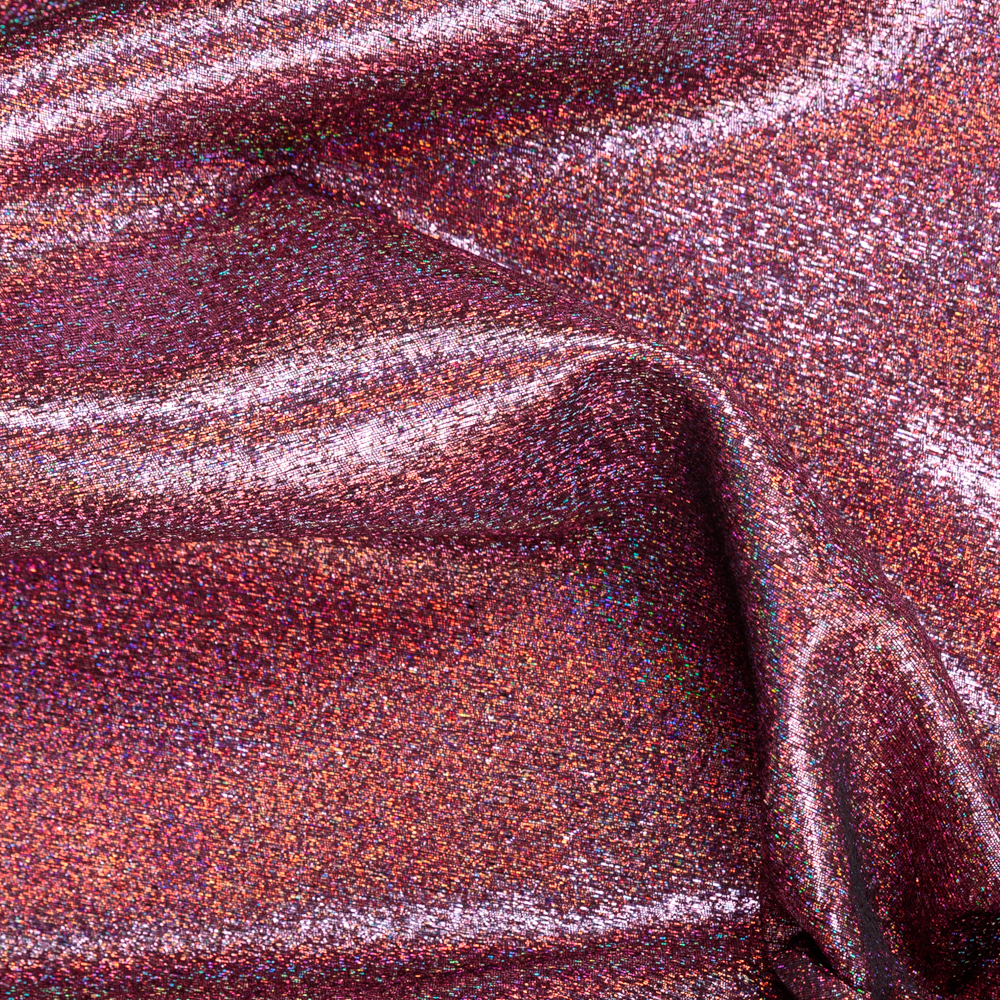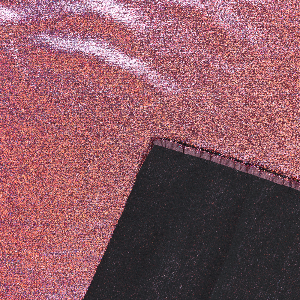 Make a dazzling statement with this midweight Iridescent Metallic Lame in Cerise, shimmering in pinks with flashes of purple, green, and red that catch the light. Non-stretch and structurally firm, its coarse texture lends itself beautifully to tailored jackets and suits, structured eveningwear, and voluminous blouses or skirts. Perfect for festive occasions and bold Christmas looks, this fabric brings eye-catching glamour to your most unforgettable creations.