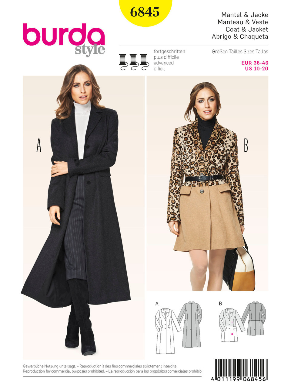 Classy pieces for many seasons to come. Slimline sporty coat A with flap pockets, lapel and rear walking slit. Cross waist seam of coat B with integrated pockets and a mix of different colors and materials