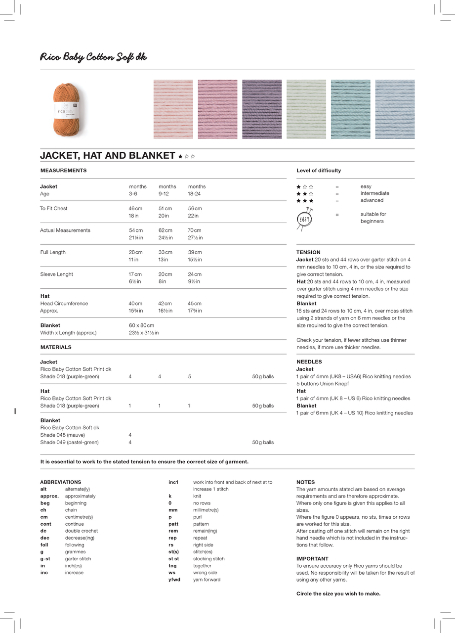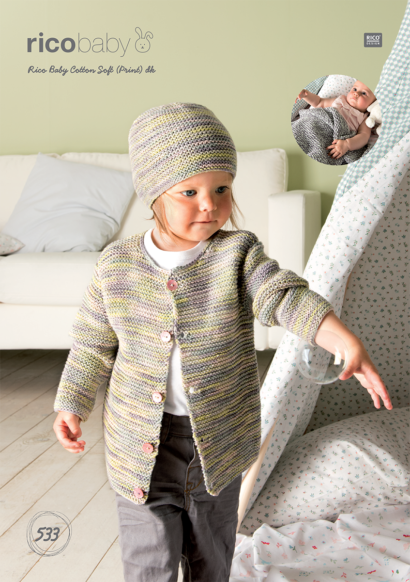 Jacket, Hat & Blanket in Rico Baby Cotton Soft Print DK (533) - PDF