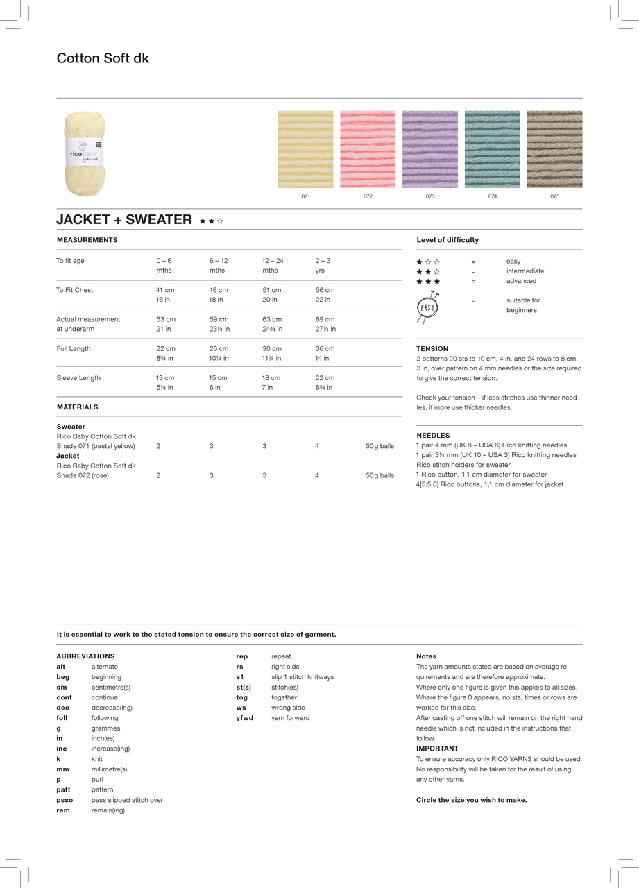 1 Pair of 4.00mm (UK8-USA6) Knitting Needles, 1 Pair of 3.25mm (UK10-USA3) Knitting Needles, Stitch Holders, 1 Button (1.1cm) for Sweater, 4[5:5:6] Buttons (1.1cm) for Jacket.