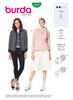 Create a sporty or feminine look by choosing a neckline variation for this jacket. Both styles feature panel seams and a zip fastener. Rib knit details the blouson jacket view A. A peplum give collarless jacket view B an especially fashionable silhouette.