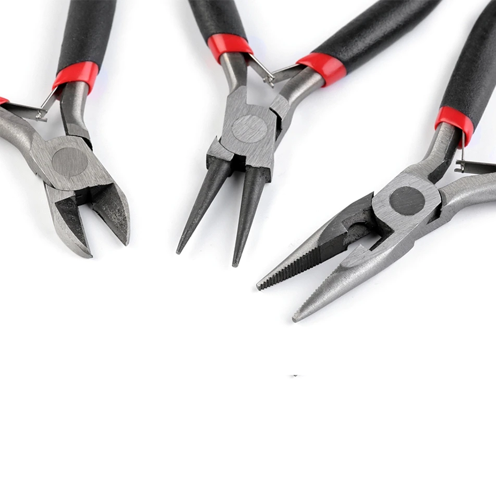 Includes three types of pliers: Round Nose, Cutting and Flat Nose pliers.