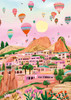 This jigsaw puzzle features the enchanting landscapes of Cappadocia, showcasing its unique rock formations and fairy chimneys, with colorful hot air balloons gracefully floating above, creating a captivating scene that highlights the region's breathtaking beauty.