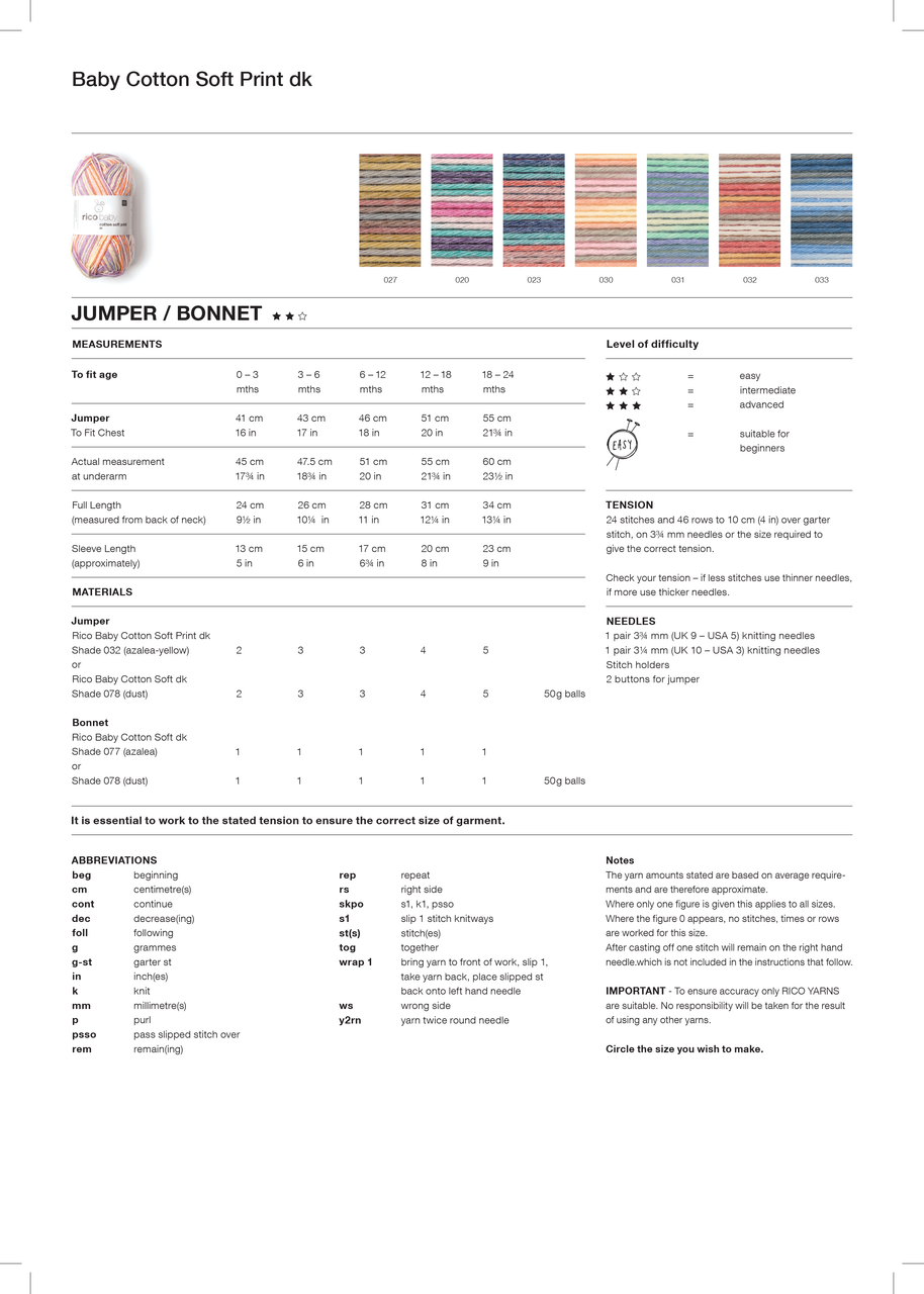 Jumper & Bonnet in Rico Baby Cotton Soft Print DK (1161) - PDF