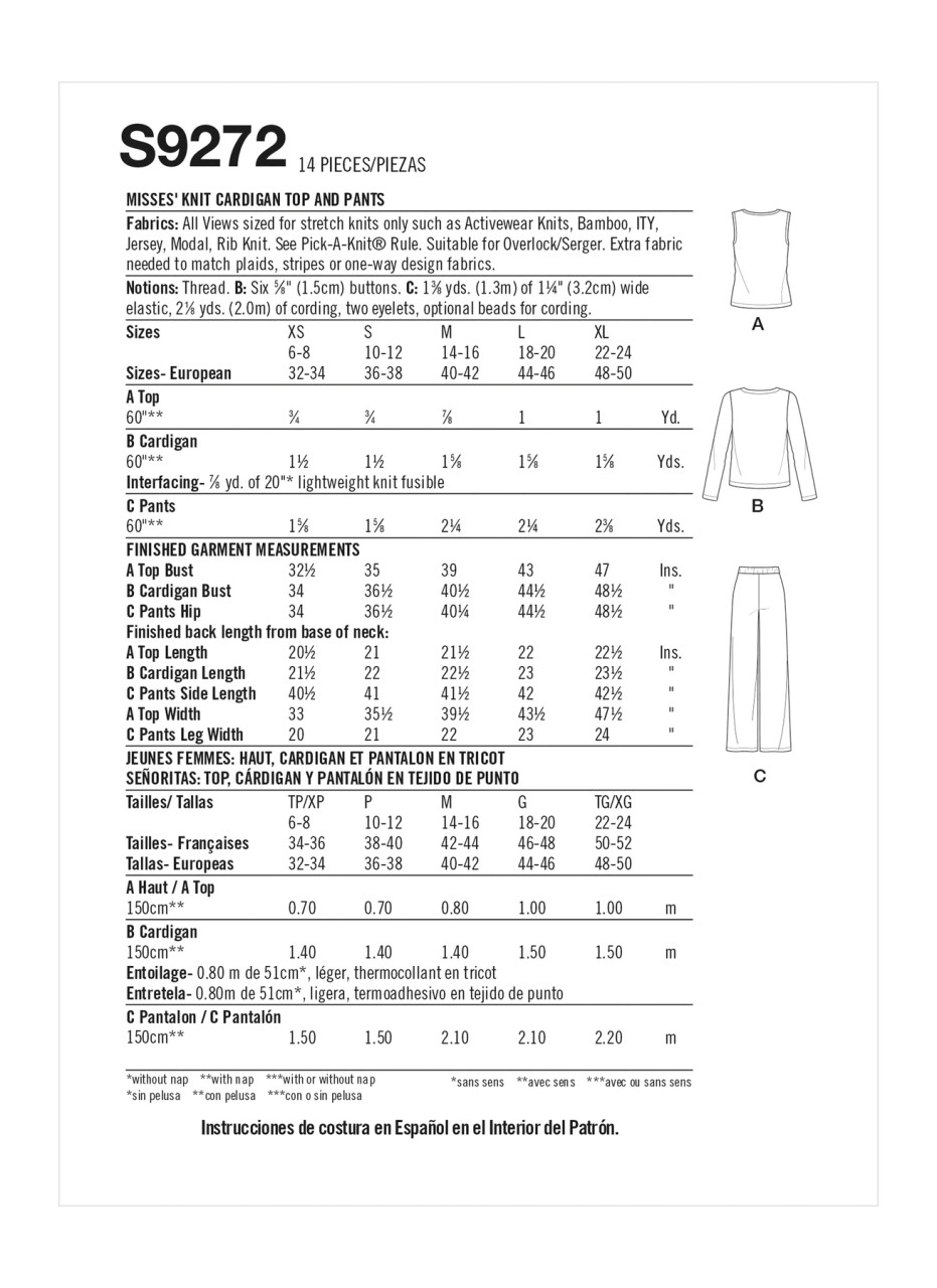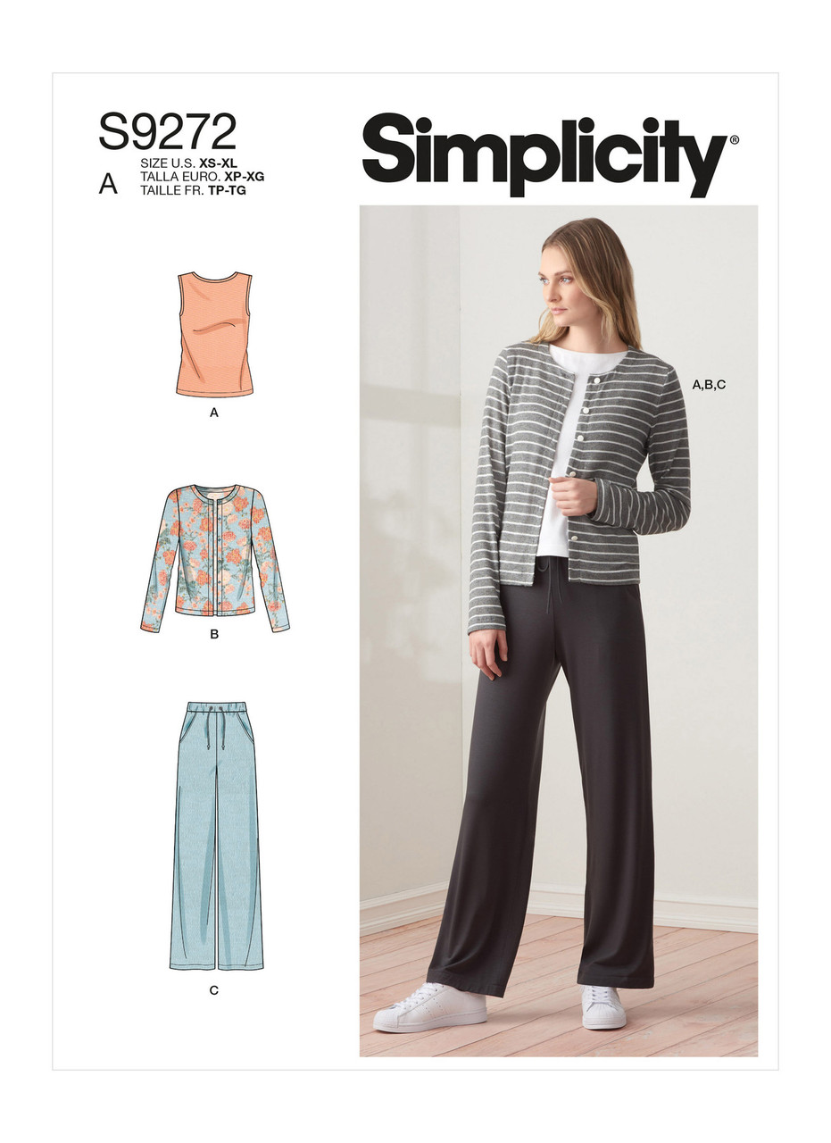 Misses' knit button front cardigan, sleeveless top & pull-on pants with knit waistband & ties.
