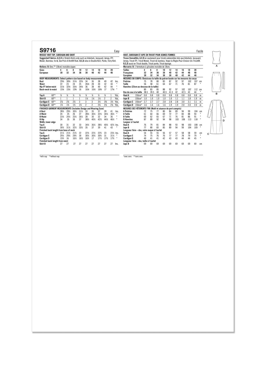 Knit Top, Cardigan & Skirt in Simplicity Misses' (S9716)