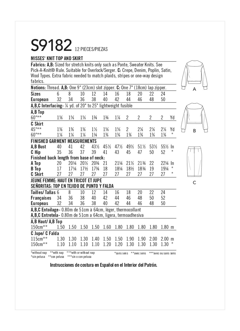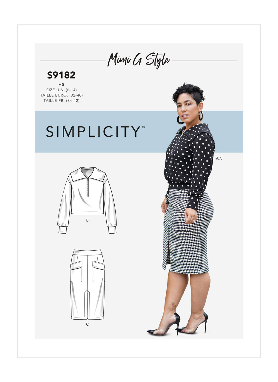 Misses' half zip v-neck knit top in two lengths & slim skirt with pocket & front slit details by mimi g.