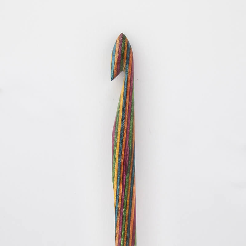 These beautiful, multi-coloured Symfonie Wood Crochet Hooks by Knit Pro are hand-crafted by skilled artisans who know and understand the art of crochet. These crochet hooks have been cleverly designed with grooves to prevent stitch slippage and their polished wood surface ensures effortless glide with every type of yarn. Warm to the touch and gentle on the hand, they're both lightweight and exceptionally durable... just don't get distracted by how pretty they are!