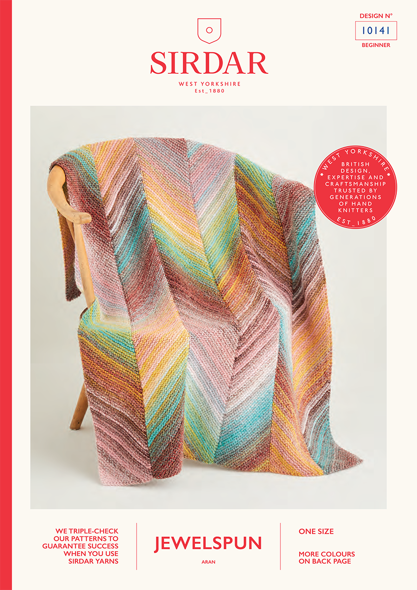 Add a homey look and an extra layer of warmth on chilly nights with this cosy, chunky blanket in Sirdar Jewelspun. This funky geometric bias blanket is knitted in stripes and then sewn together to give the zigzag effect.