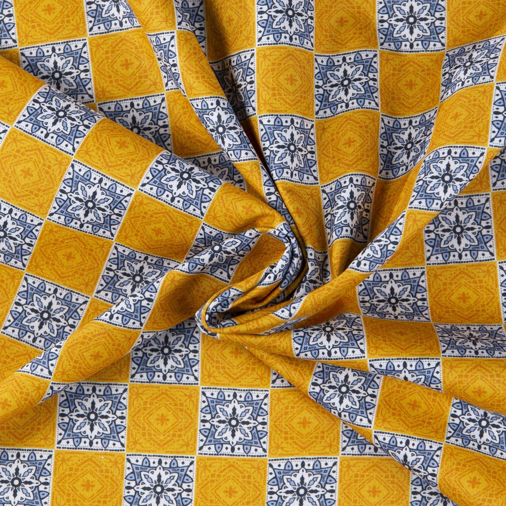 Stunning Moroccan tile inspired geometric print. Beautiful, high quality, printed cotton fabric. Ideal for quilting, masks, crafts, displays, table decoration and as a dressmaking fabric.