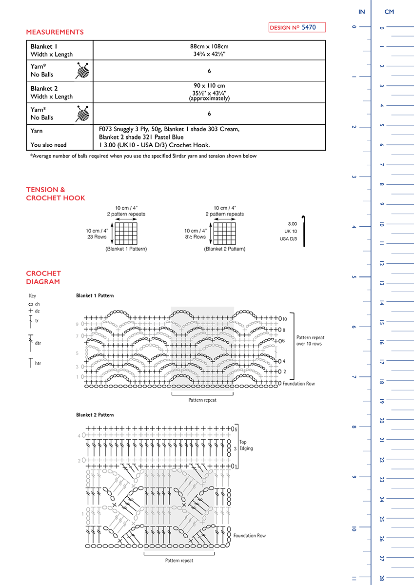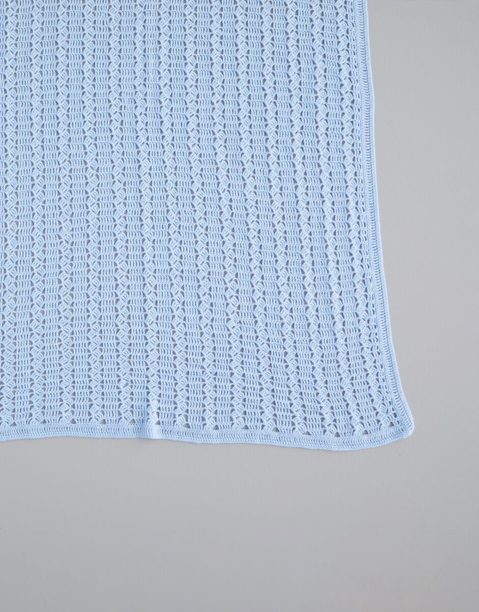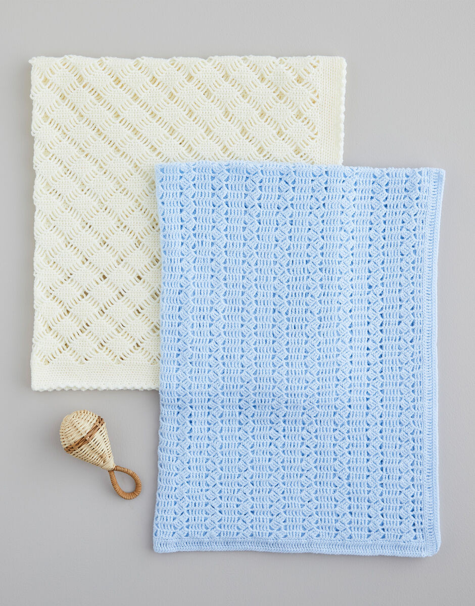 This pattern includes two dainty crochet blanket patterns. The design we’ve knitted in cream features picot edging, and you’ll double crochet and chain stitch to create the intricate diamond pattern. For the second blanket you’ll crochet double treble stitch to make the pretty lacy pattern and then you’ve made a traditional baby’s blanket.