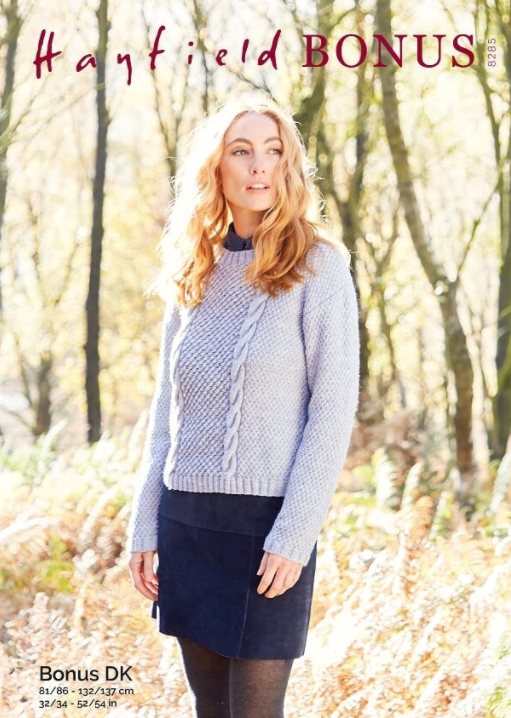 Ladies Textured Cable Sweater in Hayfield Bonus DK (8285)