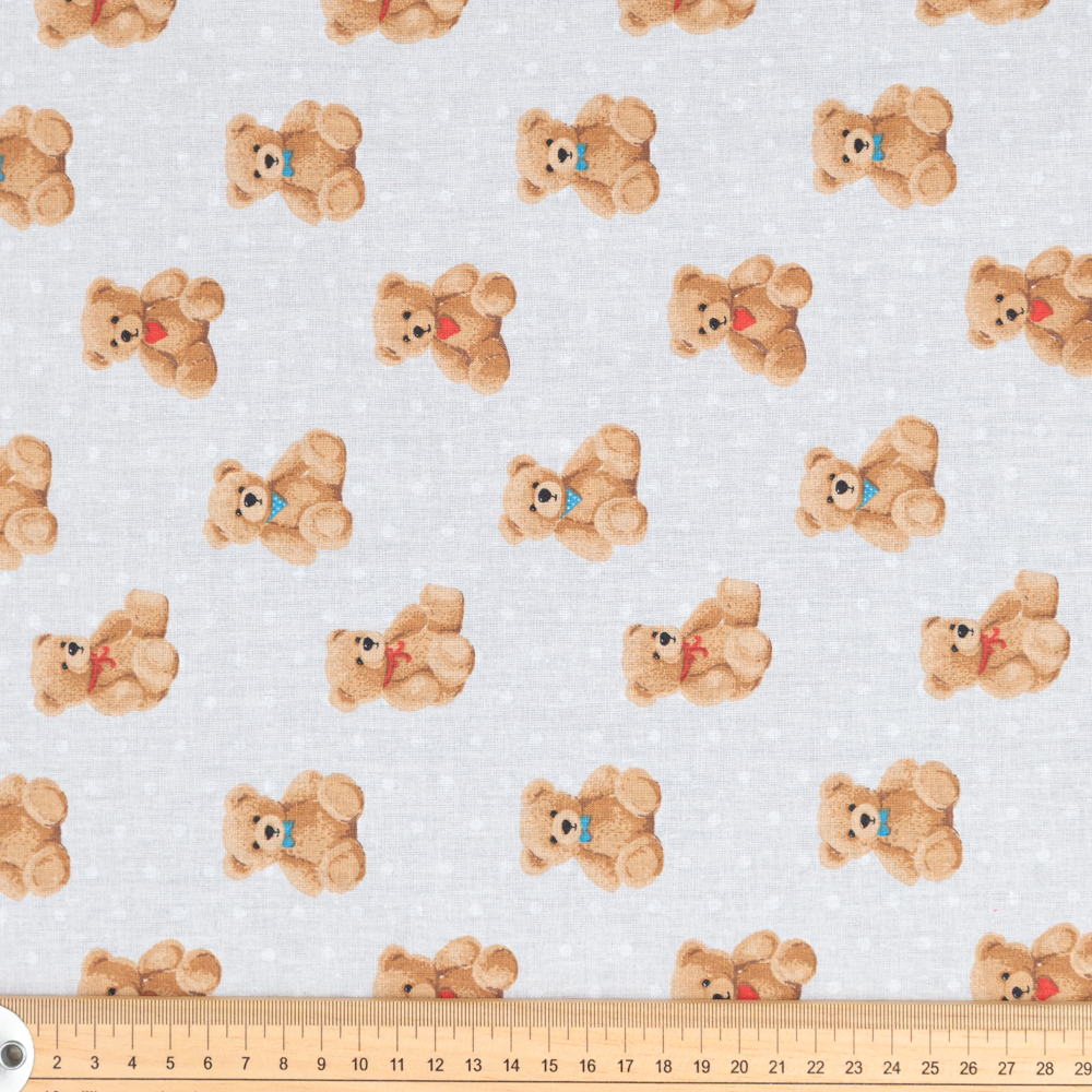 Lightweight cotton canvas featuring teddy bears on a white background with white polka dots. Prices and quantity shown are per half metre. Include 2 i… Read More