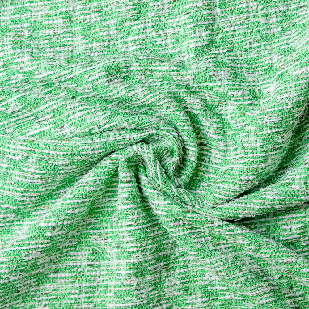 Caught up in the neon trend? This Lime green and White Polyester and Cotton Tweed is the perfect addition to your look. The tactile woven fabric is given a dose of limey goodness. Thin and midweight, create pieces for any time of year. Turn its relaxed drape into anything from high-waisted shorts to Chanel-style blazers and accent pocket dresses to slit pencil skirts. Slightly translucent, insert a lining for more opacity and structure.