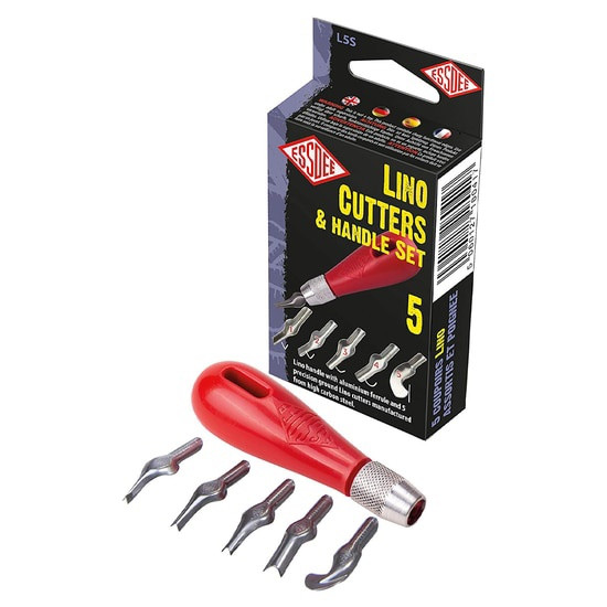 Lino handle with aluminum ferrule and 5 precision ground Lino cutters manufactured from high carbon steel.
