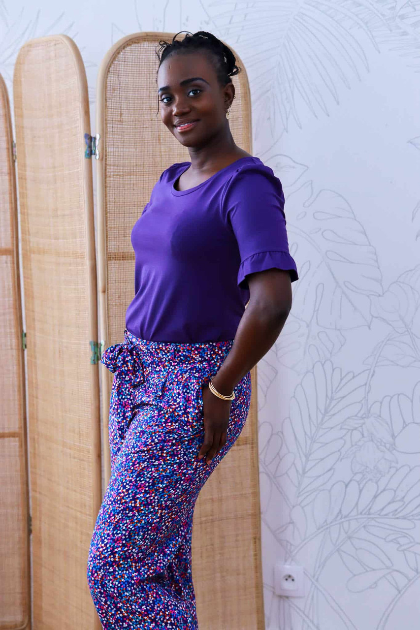 Giverny is a high-waisted trousers, fluid and elegant, ideal to wear on sunny days.