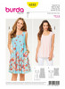Airy, loose-fitting Misses' dress with a curved yoke and pleats stitched to about waist level in front and back. View A is sleeveless and knee-length.… Read More