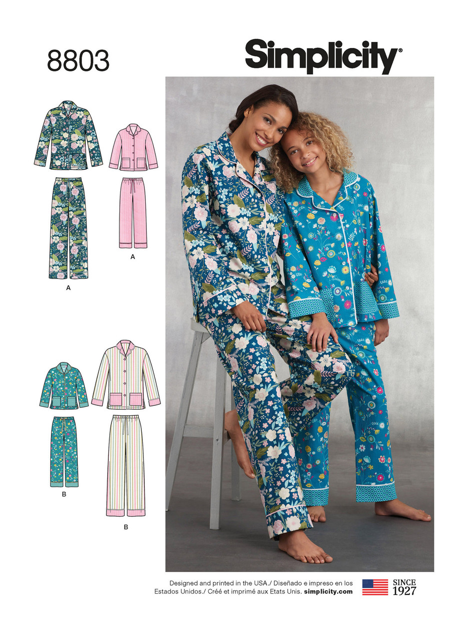 Cozy up with this adorable mother daughter classic pajama set. Pattern includes pants and top with front pockets and contrasting collar options; both Women and Girls. Twin from your favorite color or design with corresponding ribbon! NOTE: if used as sleepwear, use fabrics and trims that meet the flammability standards set by the U.S. Government.