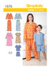 Child's, girls' and boys' lounge-gown in two lengths, trousers, shorts and pocketed shirt with sleeve variations. Simplicity sewing pattern.*Note: If used as sleepwear, use Fabrics & Trims that meet the Flammability Standards set by the U.S. Government.*