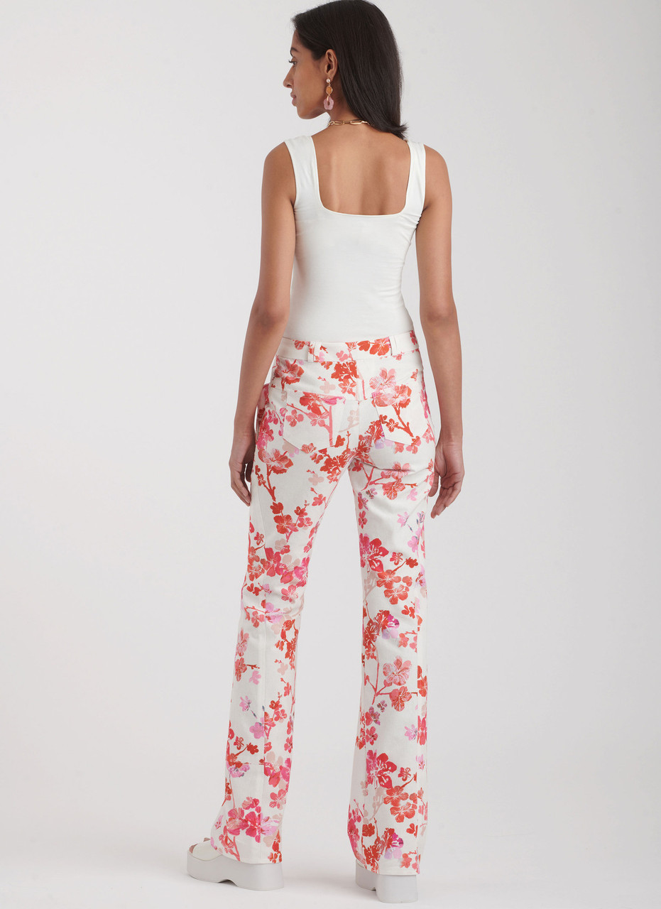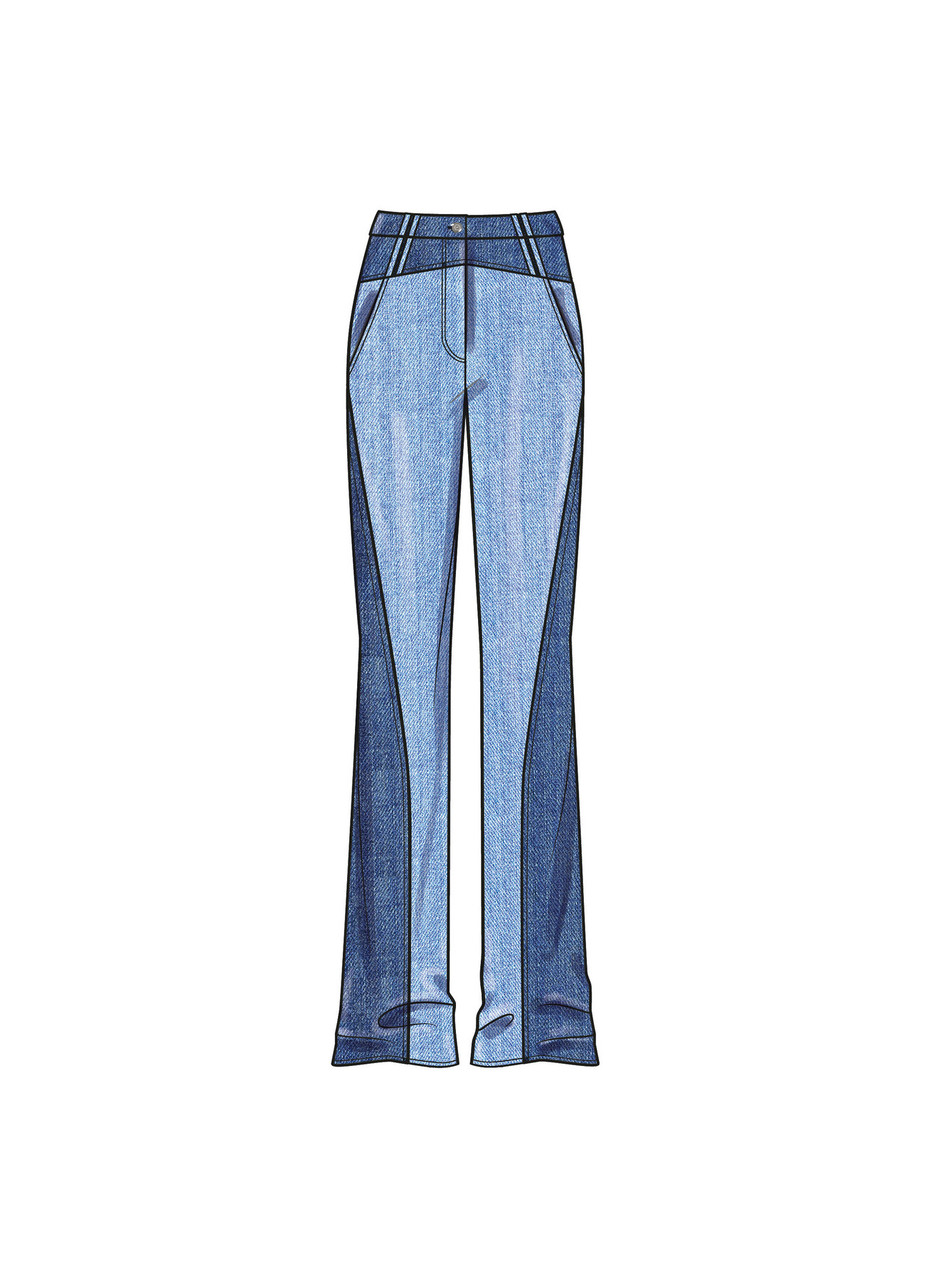 Low waisted jeans with pockets have two closure options, a front fly zipper or button fly closure. View B has contrast outer panels, yoke and waistban… Read More