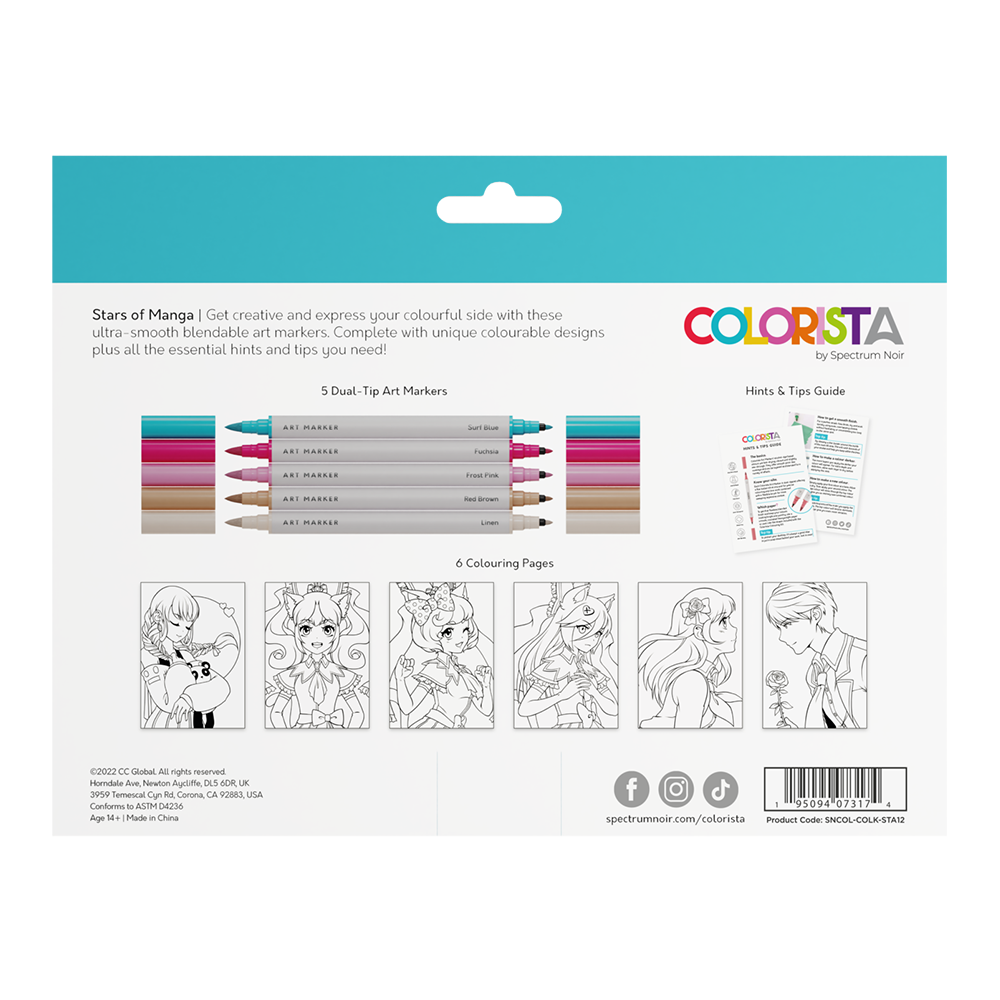Stars of Manga Colouring Kit. Let your inner comic book artist shine with the Stars of Manga Colouring Kit from Colorista. Whether you spend ten tranquil minutes colouring with a cup of tea, or set aside an afternoon to experiment and develop your skills, Colorista Colouring Kits will be a haven of creativity in your day!