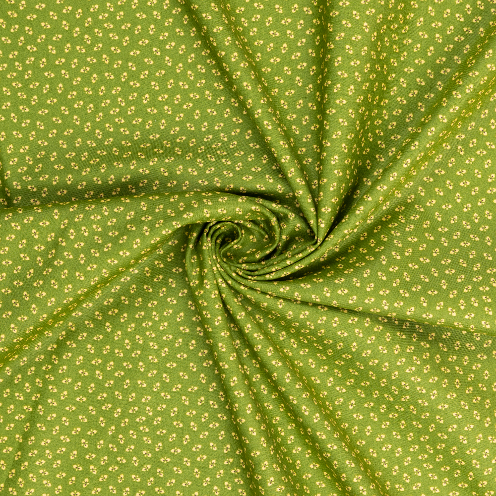 Small ditsy butterfly-like pattern on green. Beautiful, high quality, printed cotton fabric. Ideal for quilting, masks, crafts, displays, table decoration and as a dressmaking fabric.