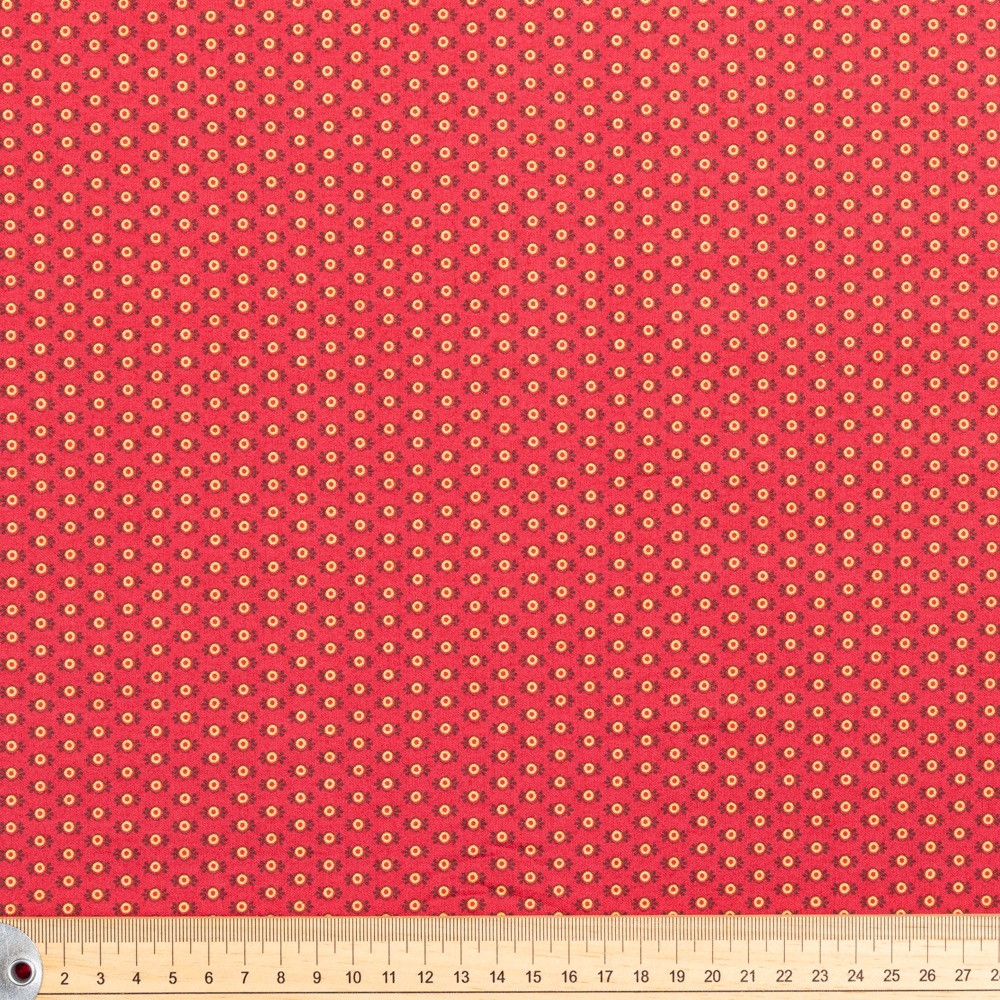 Small candy wrapper ditsy pattern on red background. Beautiful, high quality, printed cotton fabric. Ideal for quilting, masks, crafts, displays, table decoration and as a dressmaking fabric.