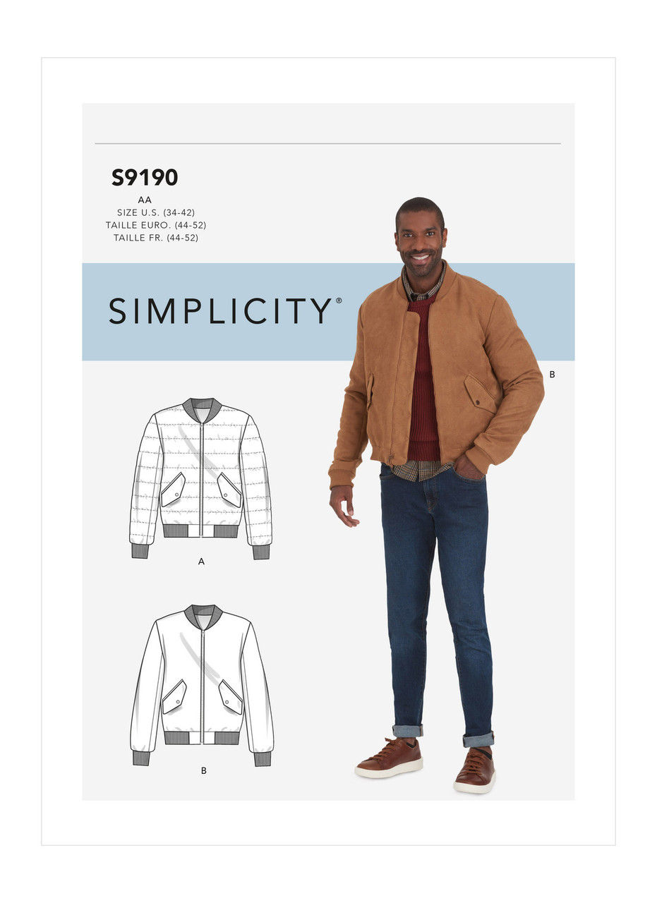 Men's relaxed lined jacket with contrast knit collar & bands, welt pockets with flap & front separating zipper.
