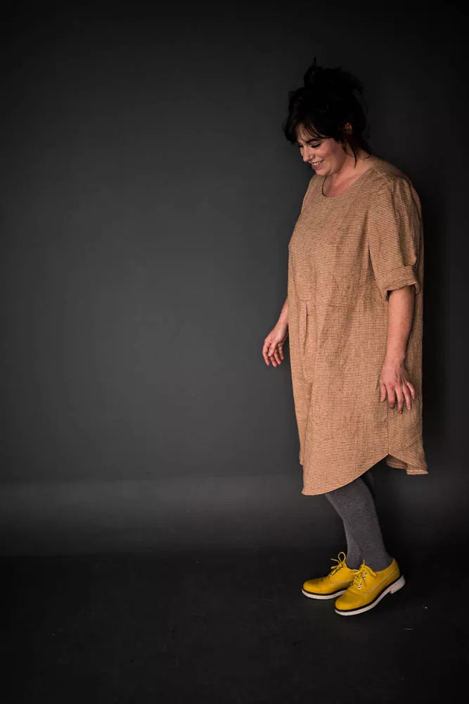 The Dress Shirt is a lightweight, versatile dress inspired by Grandpa’s shirt. It is a relaxed, classic cut to be worn loose and is absurdly comfortable. Includes a rolled up sleeve or a short sleeve.