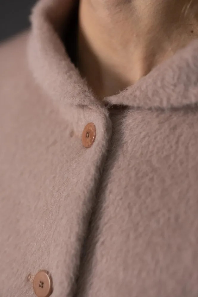 An oversized coat or jacket with a rolled collar and turn back cuffs. The coat has inseam pockets and jacket has patch pockets. Choose to make either lined or unlined.