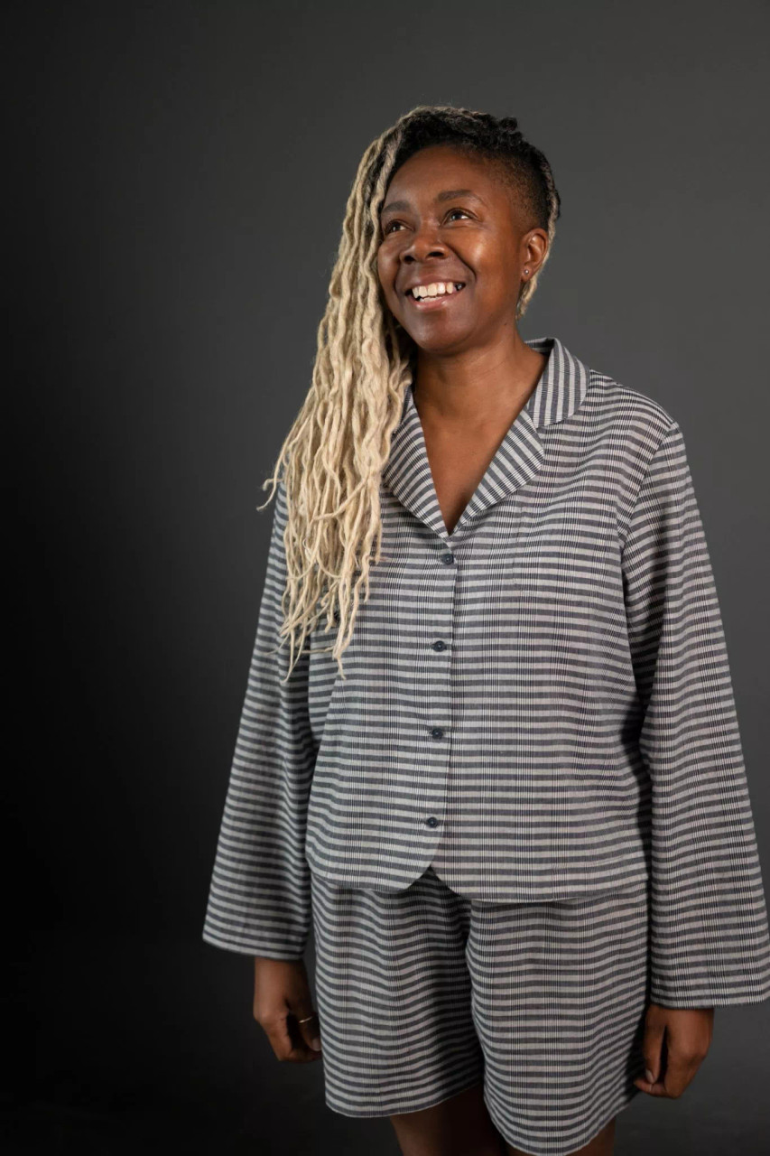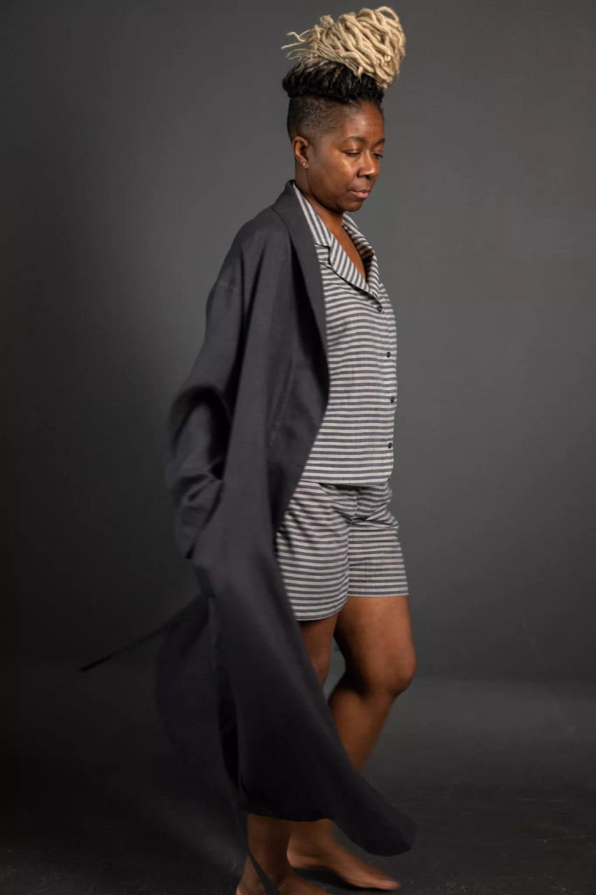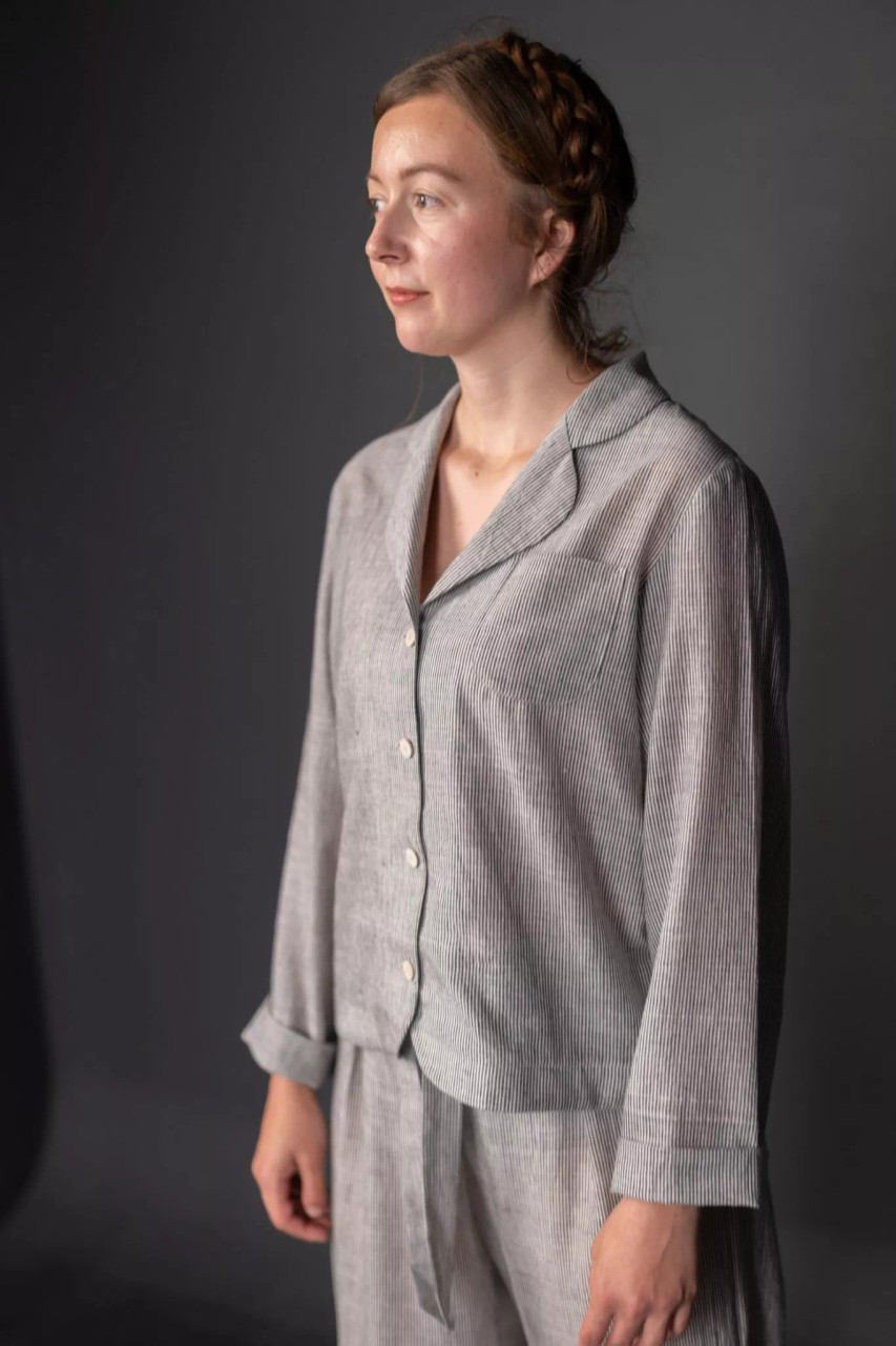 A traditional pair of pyjamas with either long or short sleeves and long, short or short - short bottoms. The top and short - short bottoms can be piped (optional).