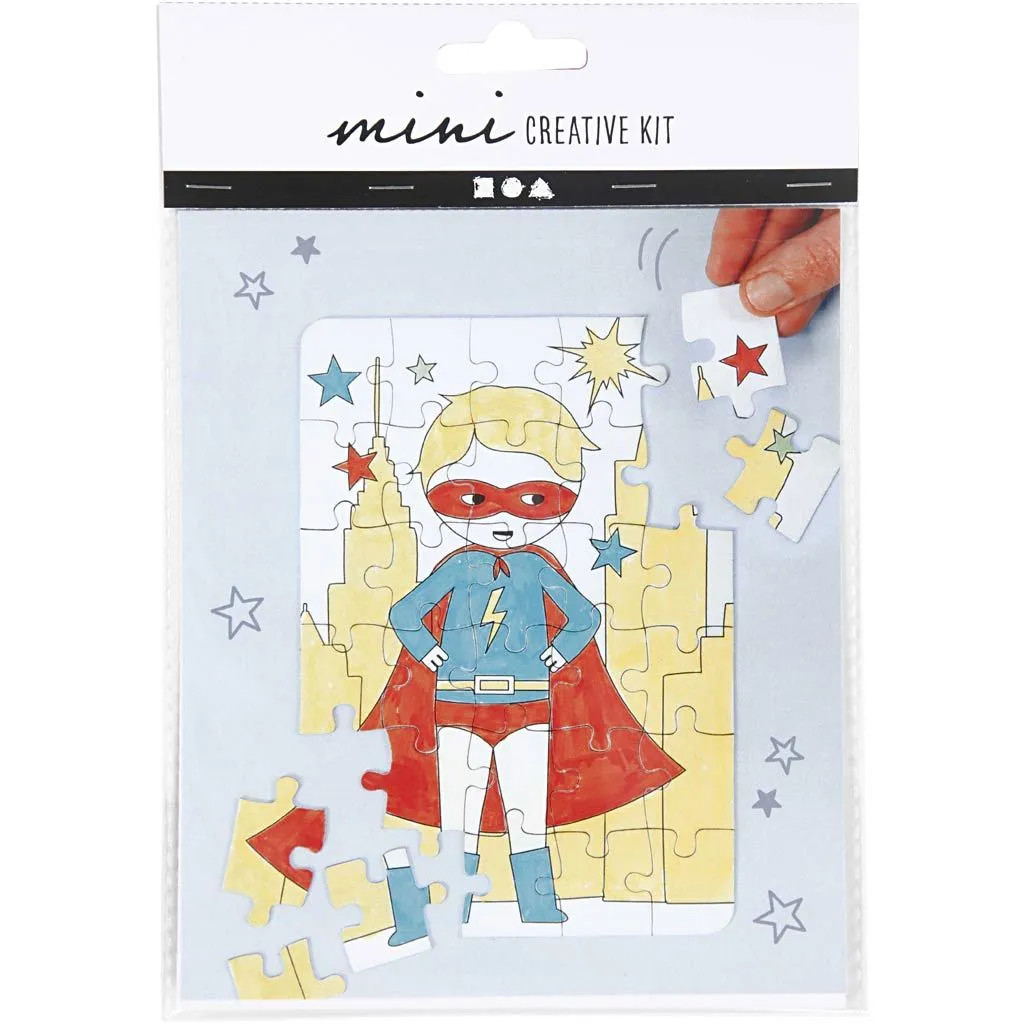 Material kit with jigsaw puzzle of cardboard with pre-printed motifs for decoration with markers. Inspiration included Content: 1 pre-printed puzzle and 4 mini markers