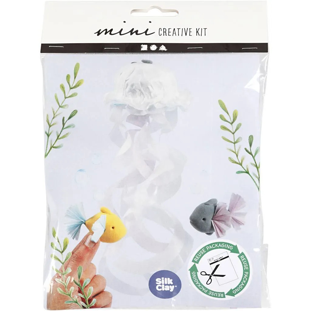 Materials kit to make a jellyfish and a fish out of Silk Clay and tissue paper. Use the packaging tub for the body and cut out the bag to make the tentacles. Instructions included.