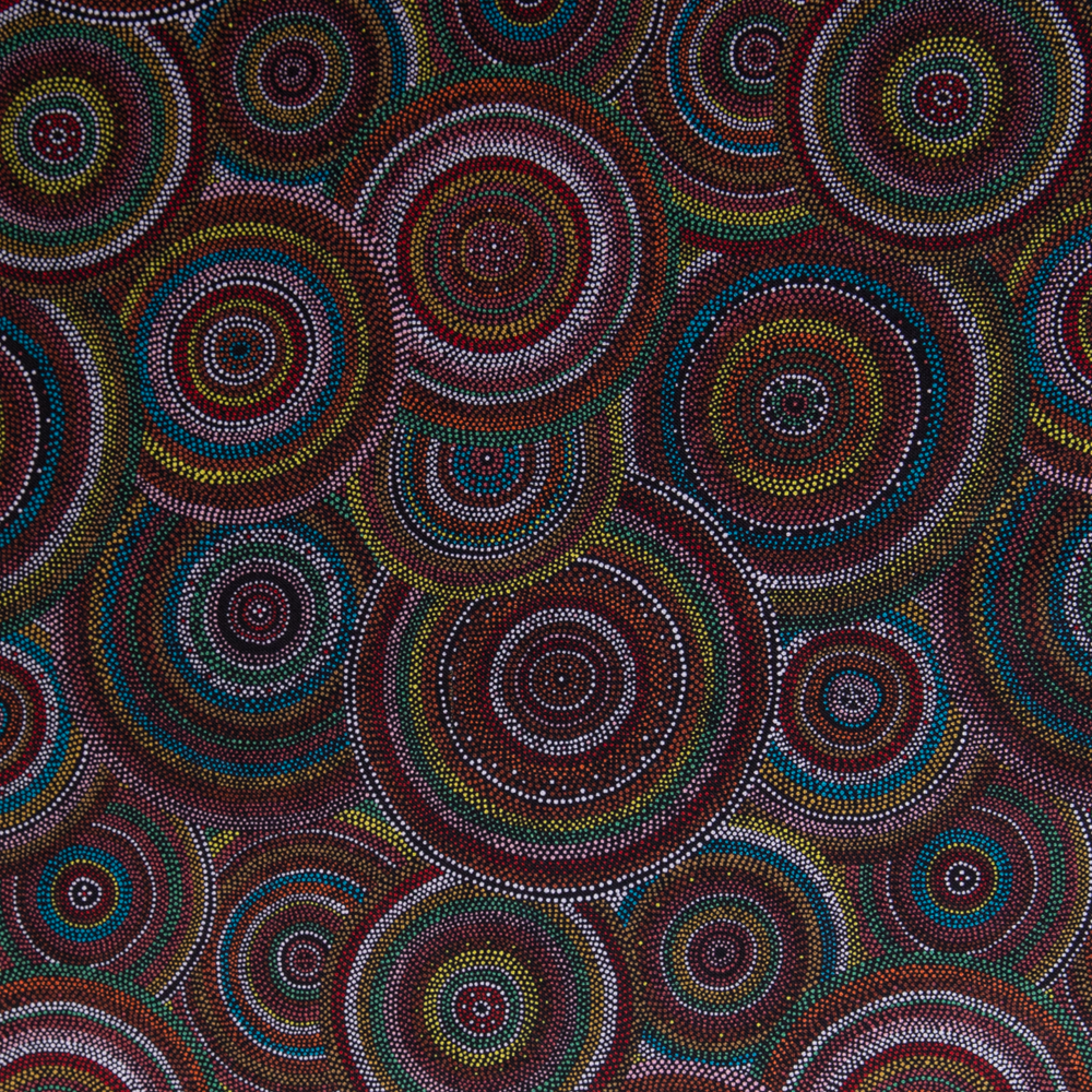 Brightly coloured concentric dotted circles adorn this dark and moody background. Beautiful, high quality, printed cotton fabric. Ideal for quilting, masks, crafts, displays, table decoration and as a dressmaking fabric.