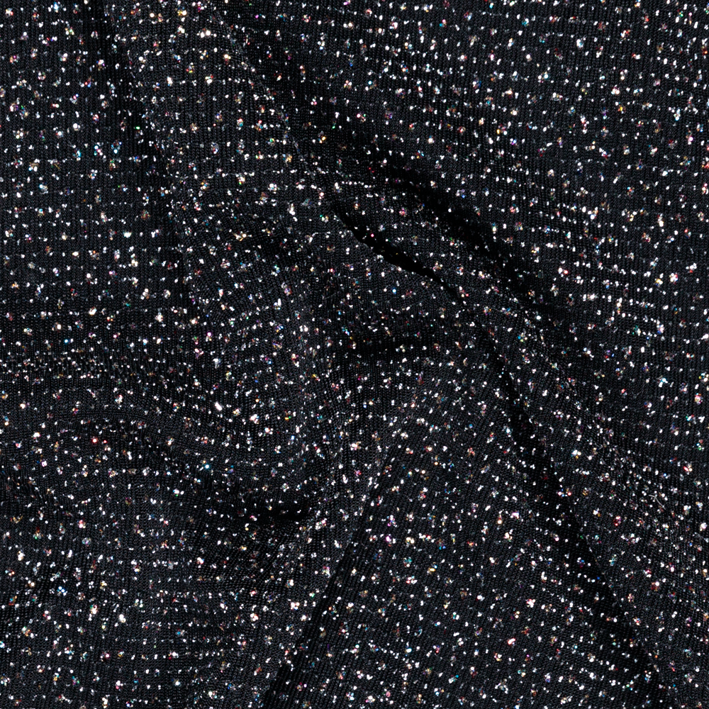 Multi Metallic Glitter Fleck on Black Jersey - Per ¼ Metre