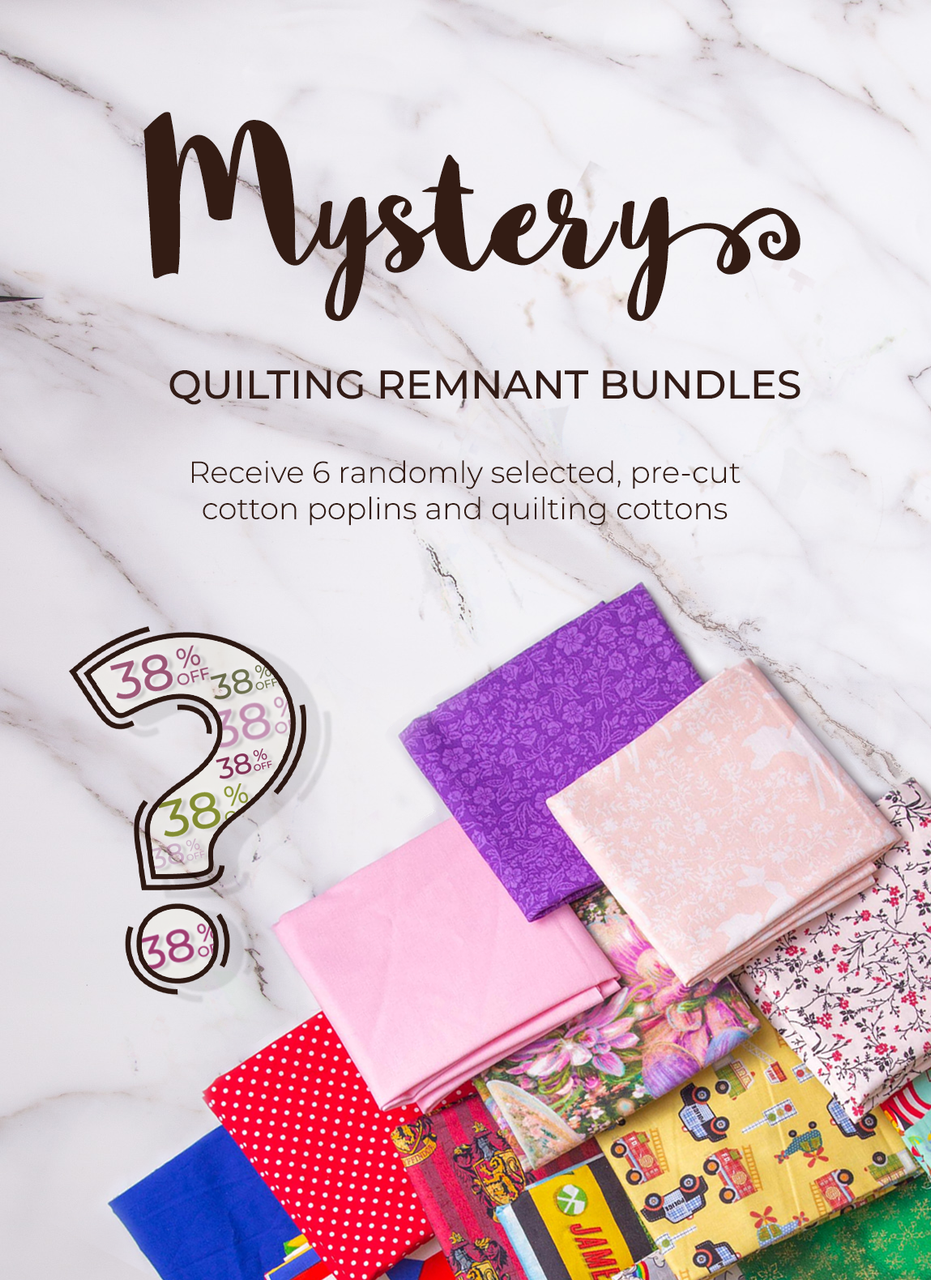 Grab a bargain! Our Mystery Quilting Remnant Bundles are made up of 3 x quilting quality and 3 x cotton poplin, 100% cotton fabrics. Please note that each bag is unique and the fabrics used differ with each bag.