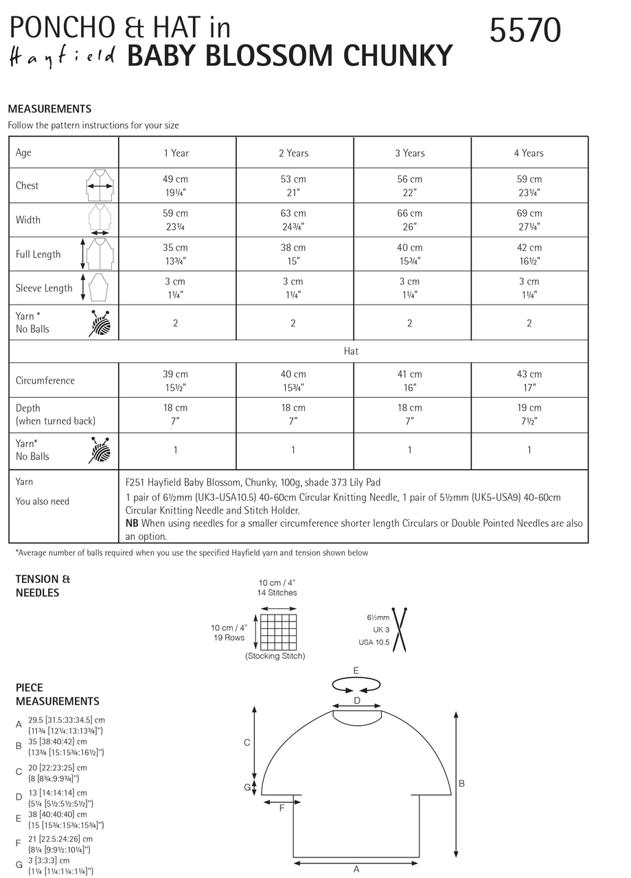 New Blooms Poncho & Hat in Hayfield Baby Blossom Chunky (5570) - PDF