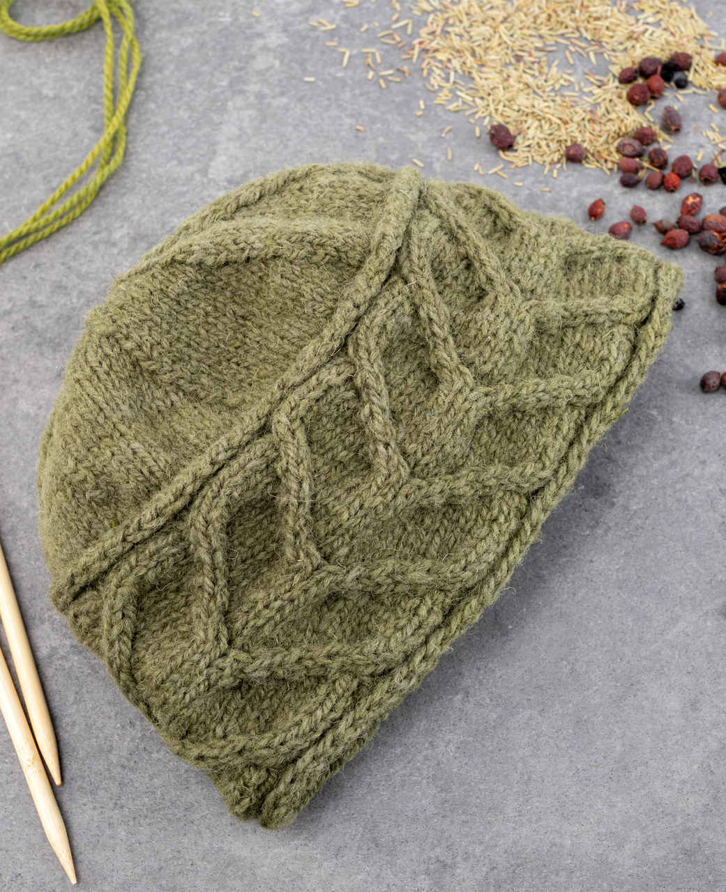 - 20 sts x 26 rows = 10cm/4” in Trellis Cable Pattern and in Stockinette