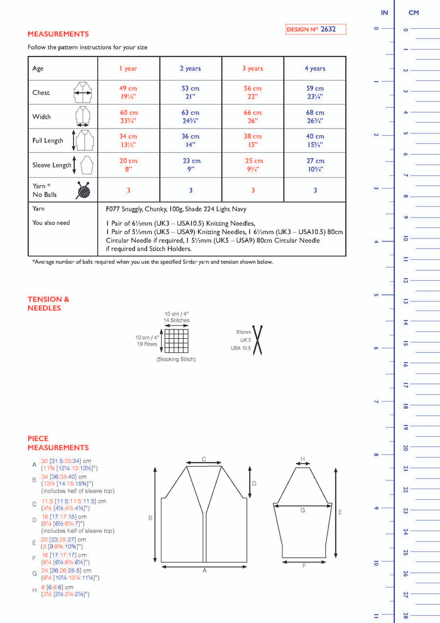 1 Pair of 6½mm (UK3 – USA10.5) Knitting Needles, 1 Pair of 5½mm (UK5 – USA9) Knitting Needles, 1 6½mm (UK3 – USA10.5) 80cm Circular Needle if required, 1 5½mm (UK5 – USA9) 80cm Circular Needle if required and Stitch Holders.