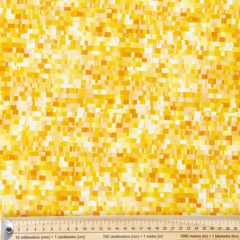 Ombre, pixillated effect print in shades of yellow .Beautiful, high quality, printed cotton fabric. Ideal for quilting, masks, crafts, displays, table decoration and as a dressmaking fabric.