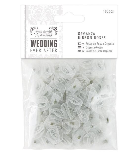 Papermania Wedding Ever After collection offers a wealth of personalisation to suit all your big day stationery and decoration needs. This pretty pack of silver Organza Ribbon Roses contains 100 roses approximately 15mm diameter.