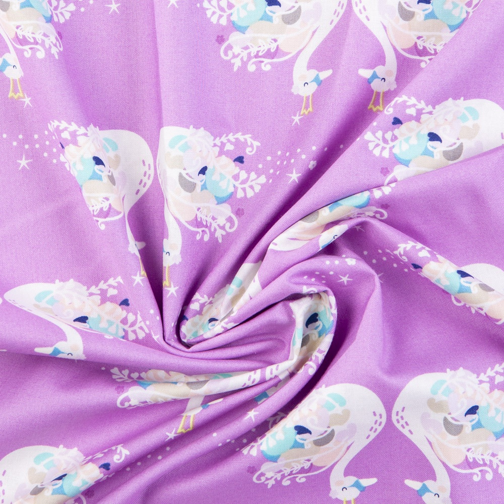 A stunning duo of swans are printed on this pink background. Beautiful, high quality, printed cotton fabric. Ideal for quilting, masks, crafts, displays, table decoration and as a dressmaking fabric.