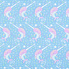 Scattered narwhals staged in stripes cover this blue background Beautiful, high quality, printed cotton fabric. Ideal for quilting, masks, crafts, displays, table decoration and as a dressmaking fabric.